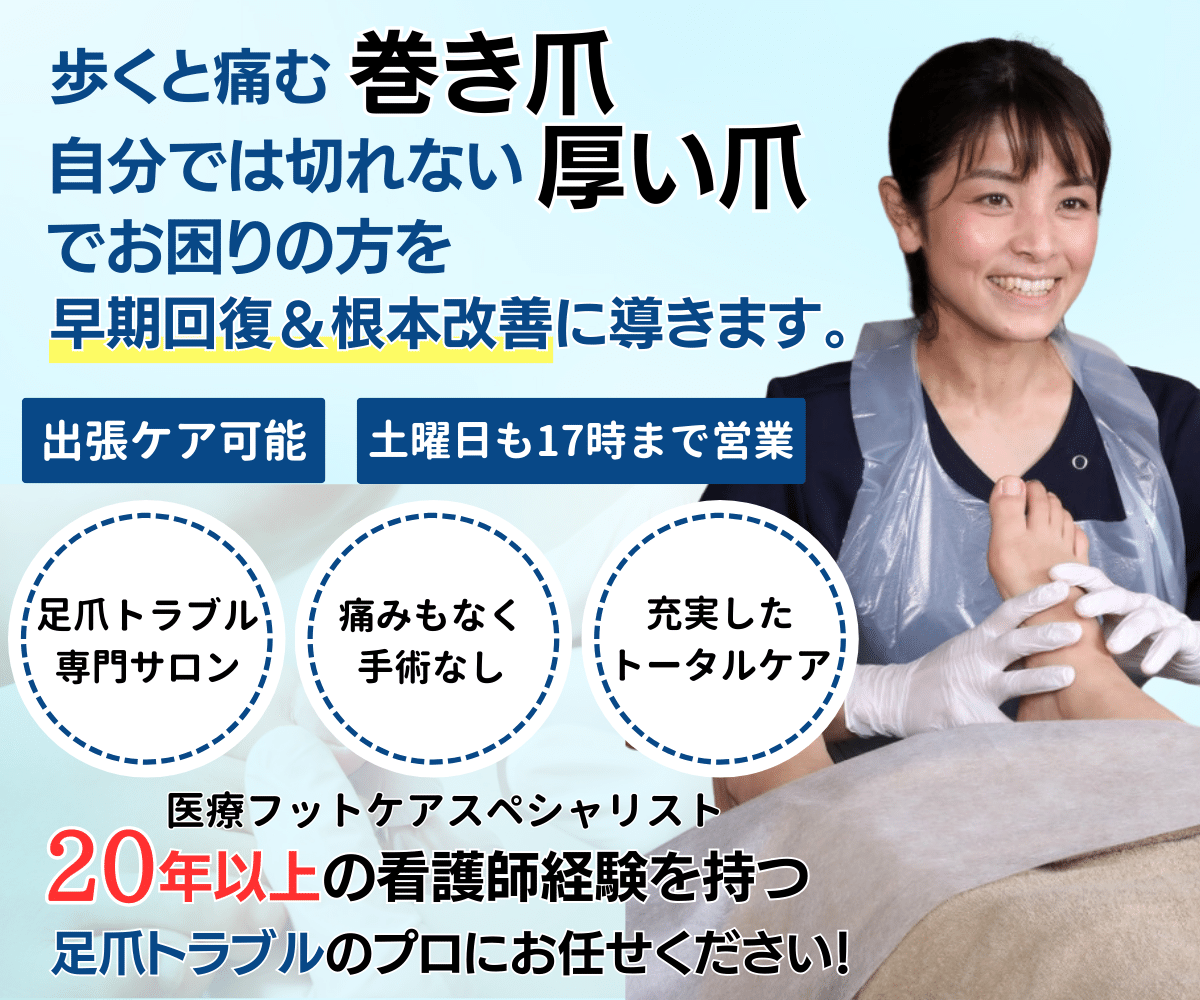 巻き爪の状態も軽度〜重度、お客様のお体の状況や生活スタイルによっても、影響は様々ですので、一度拝見させていただければと思います。